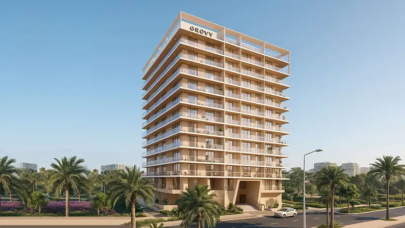 An artful home is waiting for you in Dubailand. RIVO by Grovy Developers brings a fresh vibe to DLRC. The design feels warm and the spaces feel open. The idea is to give residents both comfort and style with spacious studios to 4-bedroom apartments. The address sits within Dubai Land Residential Complex. This makes it easy to reach other parts of the city. The project has a clear focus on livable modern design and usable space. This low rise building has 11 levels and a rooftop. It feels compact yet well designed with homes made for comfortable living.